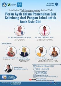 Koalisi Nasional PAUD HI bekerjasama dengan Direktorat PAUD Kementrian Pendidikan Dasar dan Menengah Republik Indonesia pada tanggal 28 Februari 2026 mengadakan Webianr dengan Tema: “Peran Ayah dalam pemenuhan Gizi Seimbang dari Pangan Lokal Untuk Anak Usia Dini”. Webinar ini diikuti oleh 2.014 peserta terdiri dari guru PAUD, kader BKB, Pokja Bunda PAUD, dan para pemerhati pendidikan anak usia dini dari seluruh daerah yang ada di Indonesia.